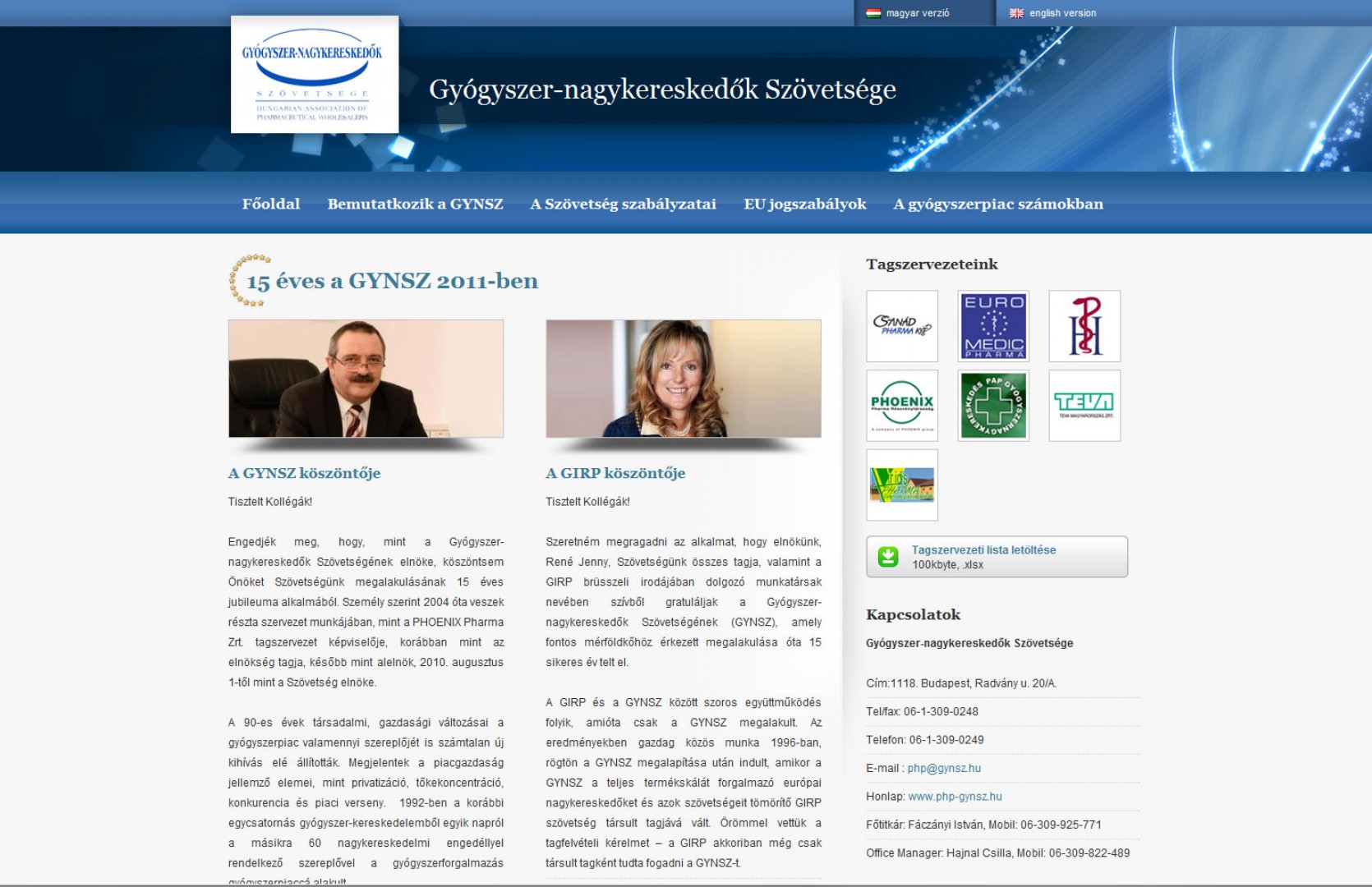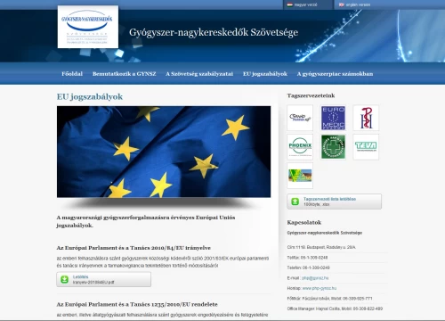 A Gyógyszer-nagykereskedők szövetségének immáron mádosik teljes értékű honlapja. A 15 éves fennállását ünneplő szövetség új honlapja korszerűbb adminisztrációs felületet kapott és a kor elvárásaihoz igazodó könnyen áttekinthető és olvasható külsőt.Megrendelő:Gyógyszer-nagykereskedők szövetségeÜzembe helyezve:2011/10