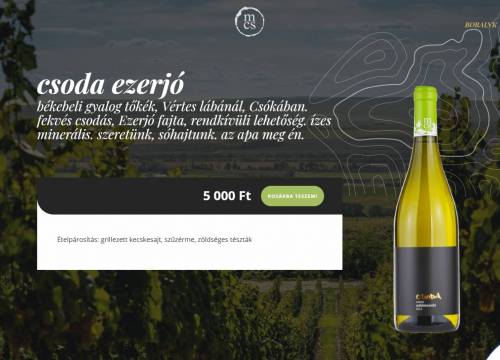 Weboldalba szolidan illeszkedő webáruház, mely Miklós Csabi pincéjét mutatja be, és nem mellesleg meg is lehet vásárolni a finom borokat.